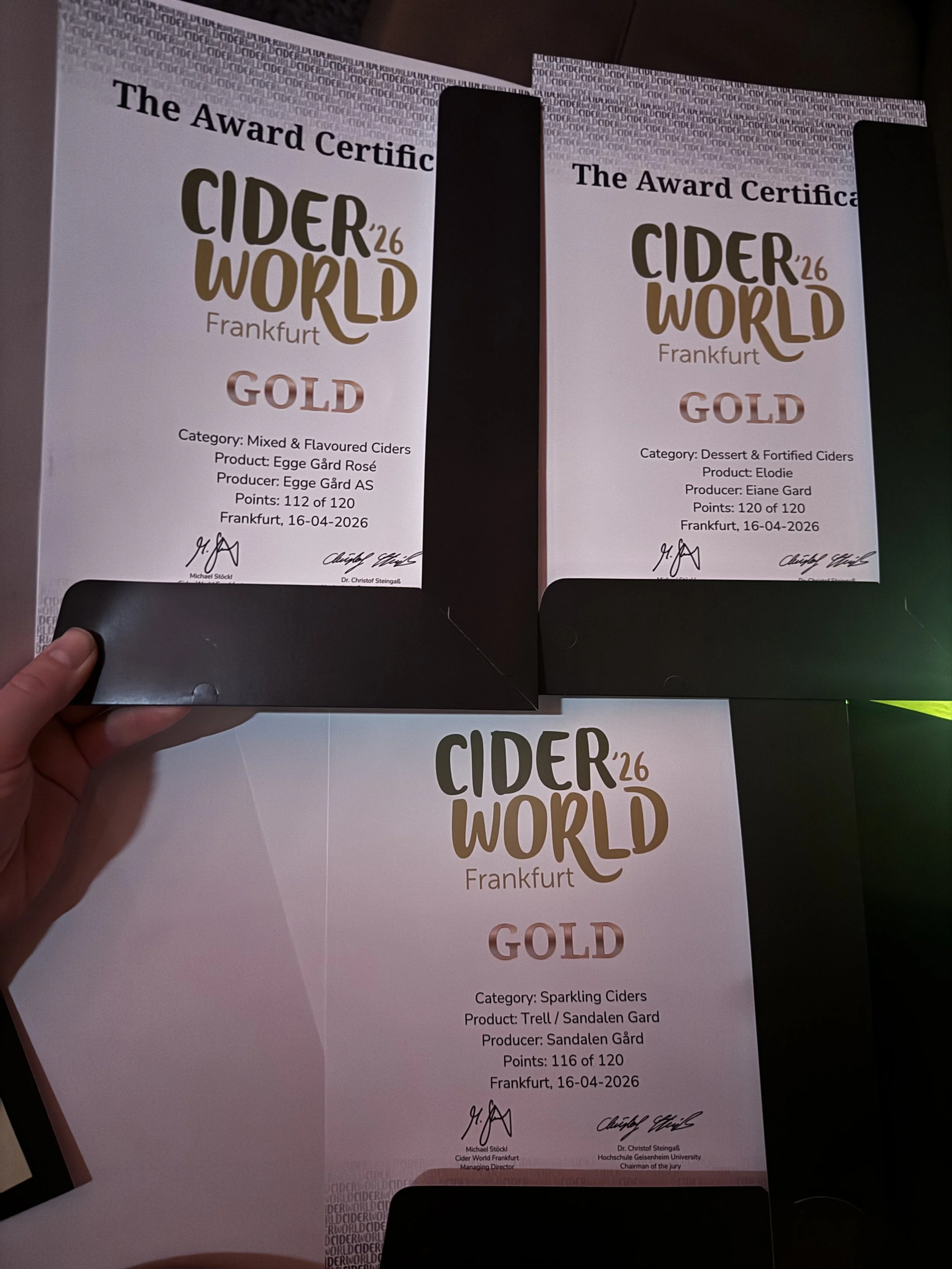 I tillegg til de to kategorivinnerne hentet norske siderier hjem ytterligere fire gull. Hardanger Saft og Siderfabrikk tok gull på sin «Leikvin Rosèsider» i Mixed & Flavoured-klassen (114 poeng). Egge Gård AS fra Innlandet leverte to gull: «Egge Gård Rosé» i Mixed & Flavoured og isepleet «Egge Gård Iseple» i Dessert & Fortified – begge 112 poeng. Og Ulvik Frukt & Cideri fra Hardanger hentet gull for «Hylleblomsider» (109 poeng).